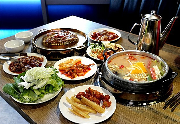 阿豬嘻烤肉村提供銅盤烤肉+韓式部隊鍋,火烤兩吃喔!