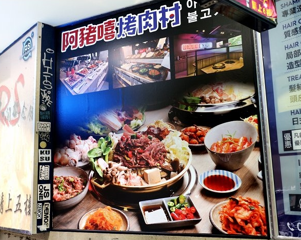 阿豬嘻烤肉村位在峨嵋街和漢中街交叉口附近,