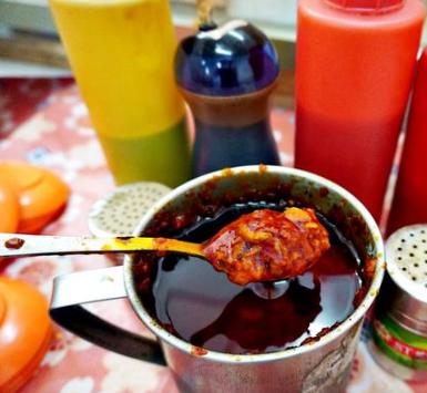 店家自製的小魚乾辣醬,