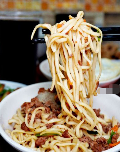 使用瘦肉較多的肉燥搭配特選的黃扁麵,