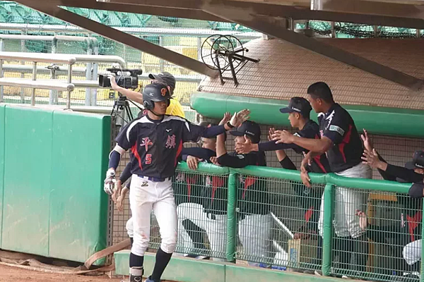 林子豪(左)在去年底長華盃夯出高中生涯首支全壘打。 王婉玲/攝影