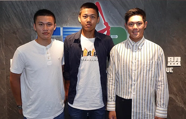 中職選秀高中大物「三林」捕手林辰勳(左起)、三壘手林子豪、林子崴一同遞交報名表,4支球隊中至少有1隊與他們無緣。 聯合報系資料照片