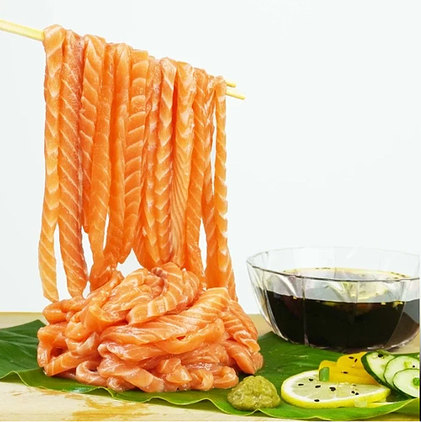 而如今,利用鮭魚生魚片製成的「拉麵」——「生魚麵」也開始蔚為流行,這種麵最常出現在網路上的「吃播」影片當中:各個直播主或Youtuber大口吸吮著由生魚片所製成的麵條,享受著清涼的快感,也牽動著觀眾的感官。